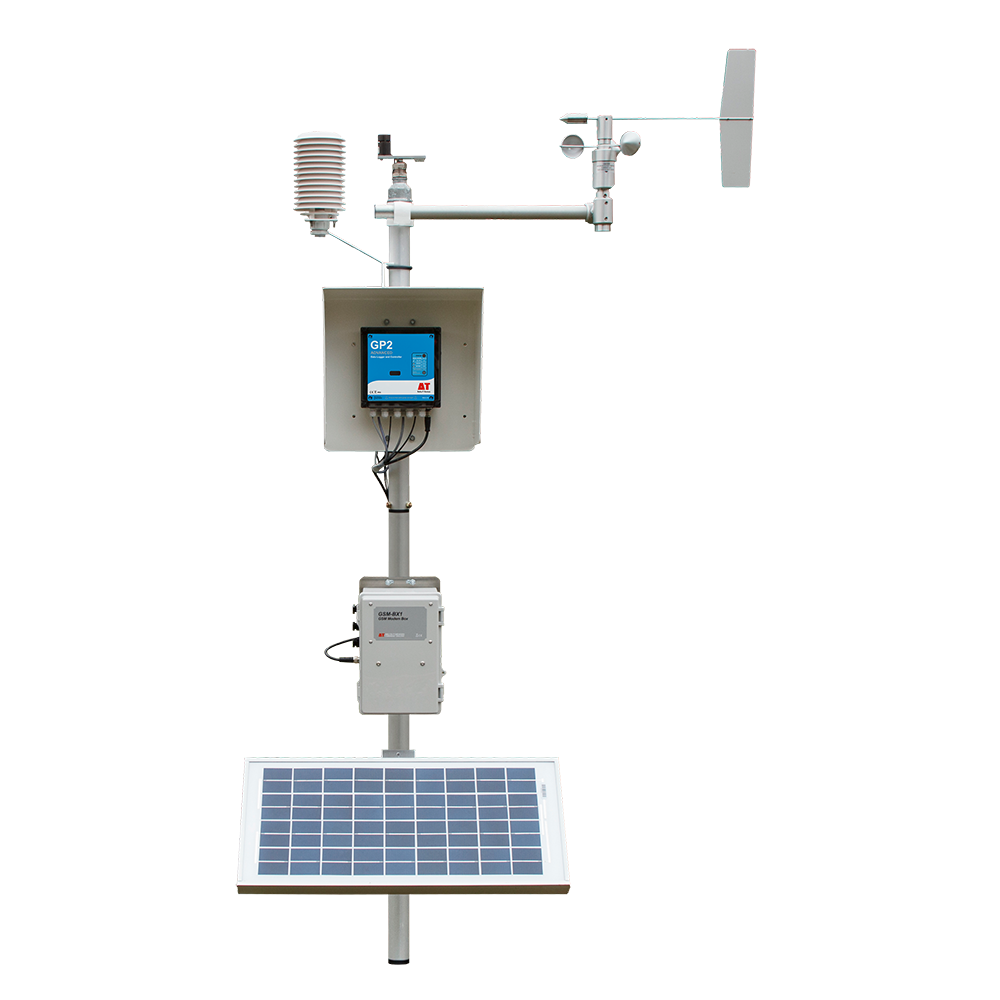 The standard WS-GP2 includes sensors to measure rain, solar radiation, soil temperature, wind speed and direction, relative humidity and air temperature.